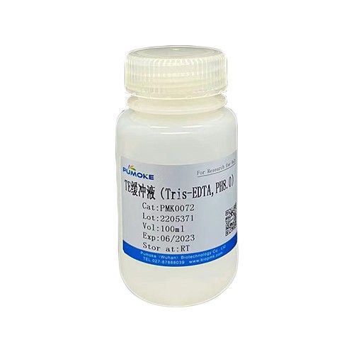TE緩沖液是由Tris-EDTA配制而成,主要用于溶解核酸,能穩定儲存DNA和RNA。TE緩沖液是一種能在加入少量酸或堿時抵抗PH改變的溶液。TE緩沖液是弱堿性,對DNA的堿基有保護性(DNA在TE中的穩定性較好,不易被破壞其完整性或產生開環及斷裂),包括提取好的DNA也要放在TE緩沖液中保存。