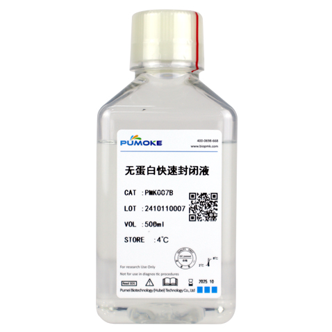 無蛋白快速封閉液是一種即用型,高效快速應用于Western Blot實驗的封閉液。封閉時間僅需15-30分鐘,效果優于脫脂奶粉、BSA、酪蛋白等傳統封閉液,獲得更高的信號,更低的背景值,信噪比高。該試劑不含有哺乳動物來源的蛋白成分,避免與抗體發生交叉反應,適用于辣根過氧化物酶(HRP)、堿性磷酸酶(AP)和生物素標記的二抗。本產品中添加了不影響HRP和AP活性的防腐劑,不會干擾HRP或AP標記二抗的檢測。同時本產品不含生物素,不會干擾基于生物素的檢測。