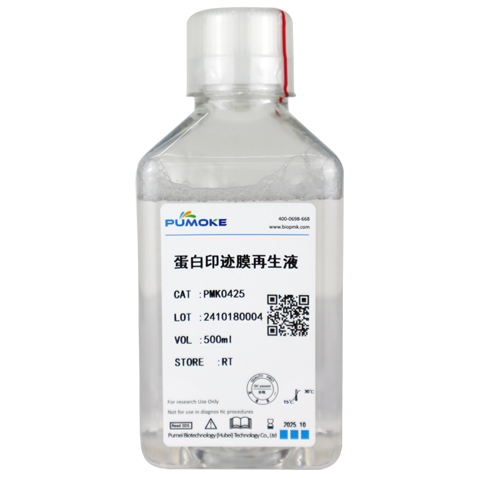 蛋白印跡膜再生液,用于免疫印跡中轉(zhuǎn)移了蛋白后膜的重復(fù)利用,可對(duì)同一張膜進(jìn)行多次Western Blot檢測(cè)。在免疫印跡中完成了一抗二抗結(jié)合和后續(xù)的化學(xué)發(fā)光檢測(cè)后,有時(shí)還需要檢測(cè)表達(dá)量相對(duì)穩(wěn)定的內(nèi)參蛋白作為參照,或檢測(cè)其它蛋白進(jìn)行比較。通過(guò)使用蛋白印跡膜再生液中特殊成份解離一抗二抗與印跡膜上抗原的結(jié)合,在不影響抗原蛋白的情況下從而去除一抗二抗,即可非常方便地重新利用同一張膜檢測(cè)其它蛋白。與重新跑SDS-PAGE膠比較,不僅省時(shí)省力,而且可以消除重新上樣而帶來(lái)的誤差,使可比性更強(qiáng)。