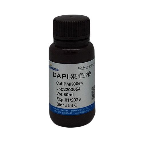 1.DAPI對人體有刺激性,操作時請小心,并注意適當防護以避免直接接觸人體或吸入體內。