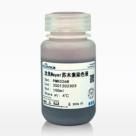 改良Mayer蘇木素染色液無毒,無氧化膜,細胞核染色質著色深而細微,臨床上常替代Harris蘇木素染色液;對細胞核染色很清晰,不著染胞質和纖維成分,屬進行性染色故染色后可以不用鹽酸乙醇分化染色時間約5-8min ,如果是充分氧化后可染色3-5min。該試劑常用于糖原等特染、酶組化和免疫組化等染色后復染細胞核作對照染色,尤其適用于經過特殊染色后不能經酸處理時對細胞核的復染,在特殊染色中常與天青石藍B液聯合染色,使細胞核染色后不被后續的酸性染料所褪色。該試劑僅用于科研領域,不適用于臨床診斷或其他用途。