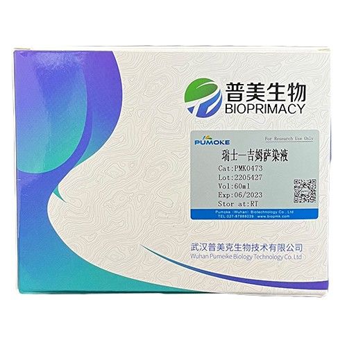 本產品以進口瑞氏色素和吉姆薩色素為主要原料,通過研磨配制而成,能呈現出清晰的細胞染色效果。經常用于血液和細胞涂片、骨髓細胞涂片、細菌染色。細胞質呈紅色,細胞核及細菌呈藍色,嗜酸性顆粒呈橘紅色。染液中加中性甘油,防止甲醇揮發或氧化,同時也可使血細胞染色較清晰。該染液的特點: 由瑞氏吉姆薩復合染色液和磷酸鹽緩沖液組成,等量混合使用或分別處理標本使用。
