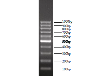 100bp,200bp,300bp,400bp,500bp(亮帶),600bp,700bp,800bp,900bp,1000bp