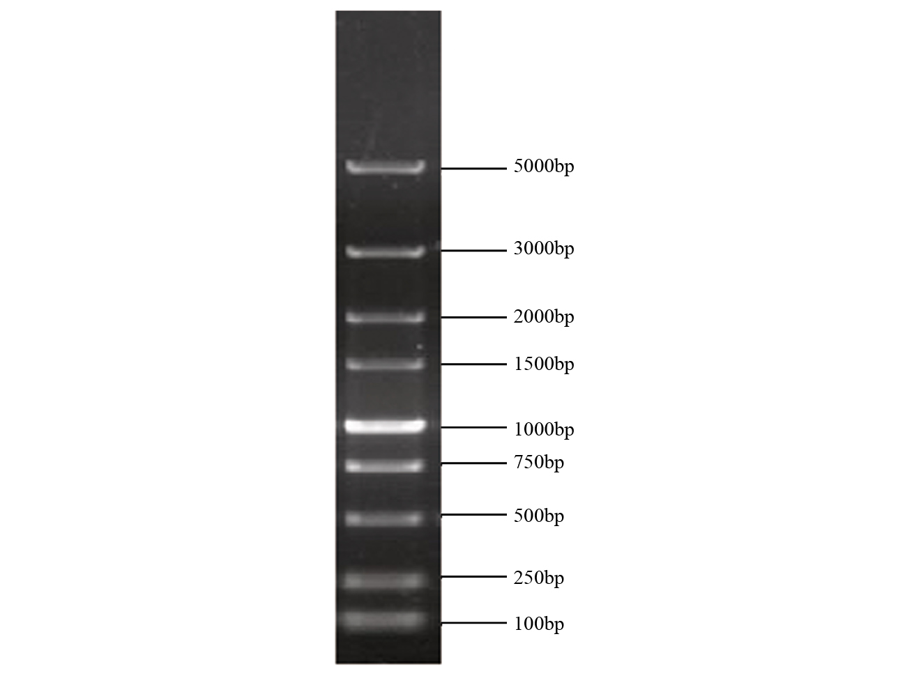 100bp,250bp,500bp,750bp,1000bp(亮帶),1500bp,2000bp,3000bp,5000bp。