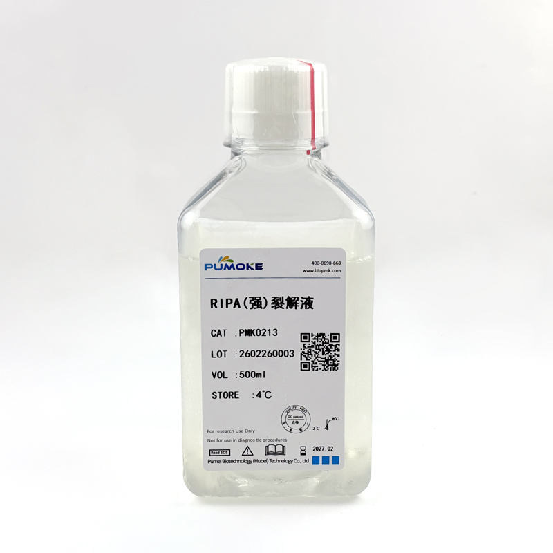 RIPA(強)裂解液是一種傳統的細胞組織快速裂解液。RIPA裂解液裂解得到的蛋白樣品可以用于常規的PAGE、Western、免疫沉淀(IP)、免疫共沉淀(co-IP)和ELISA等。