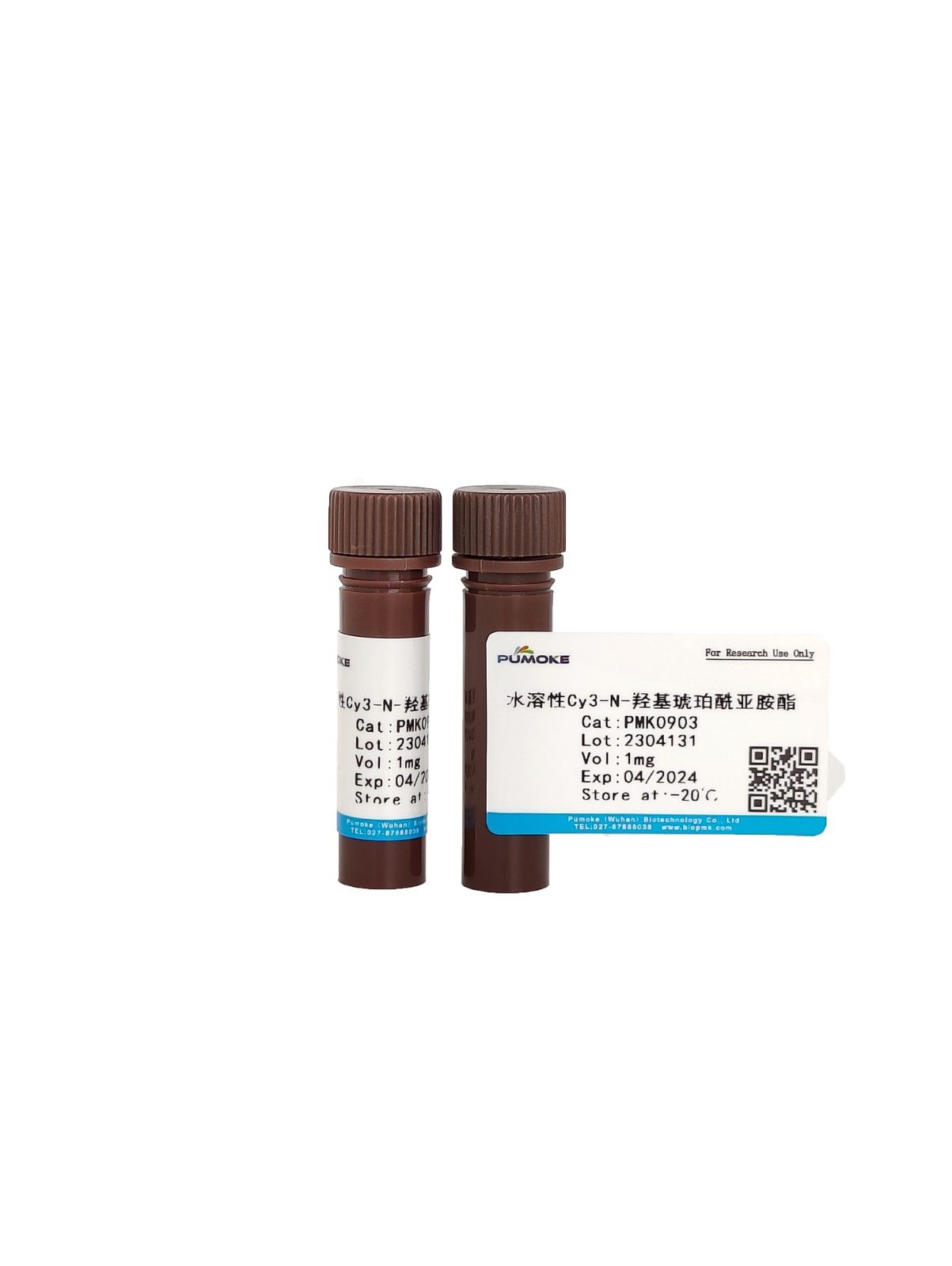 菁染料是性能優(yōu)良的熒光標(biāo)記染料,摩爾吸光系數(shù)在熒光染料中是高的,其琥珀酰亞胺酯是常用的脂肪氨基標(biāo)記試劑,廣泛用于蛋白、抗體、核酸及其他生物分子的標(biāo)記和檢測(cè)。通過(guò)改變次甲基鏈的長(zhǎng)度,?可改變其熒光發(fā)射波長(zhǎng),每增加一個(gè)雙鍵,按照Huoffman規(guī)則正好紅移約100nm。
