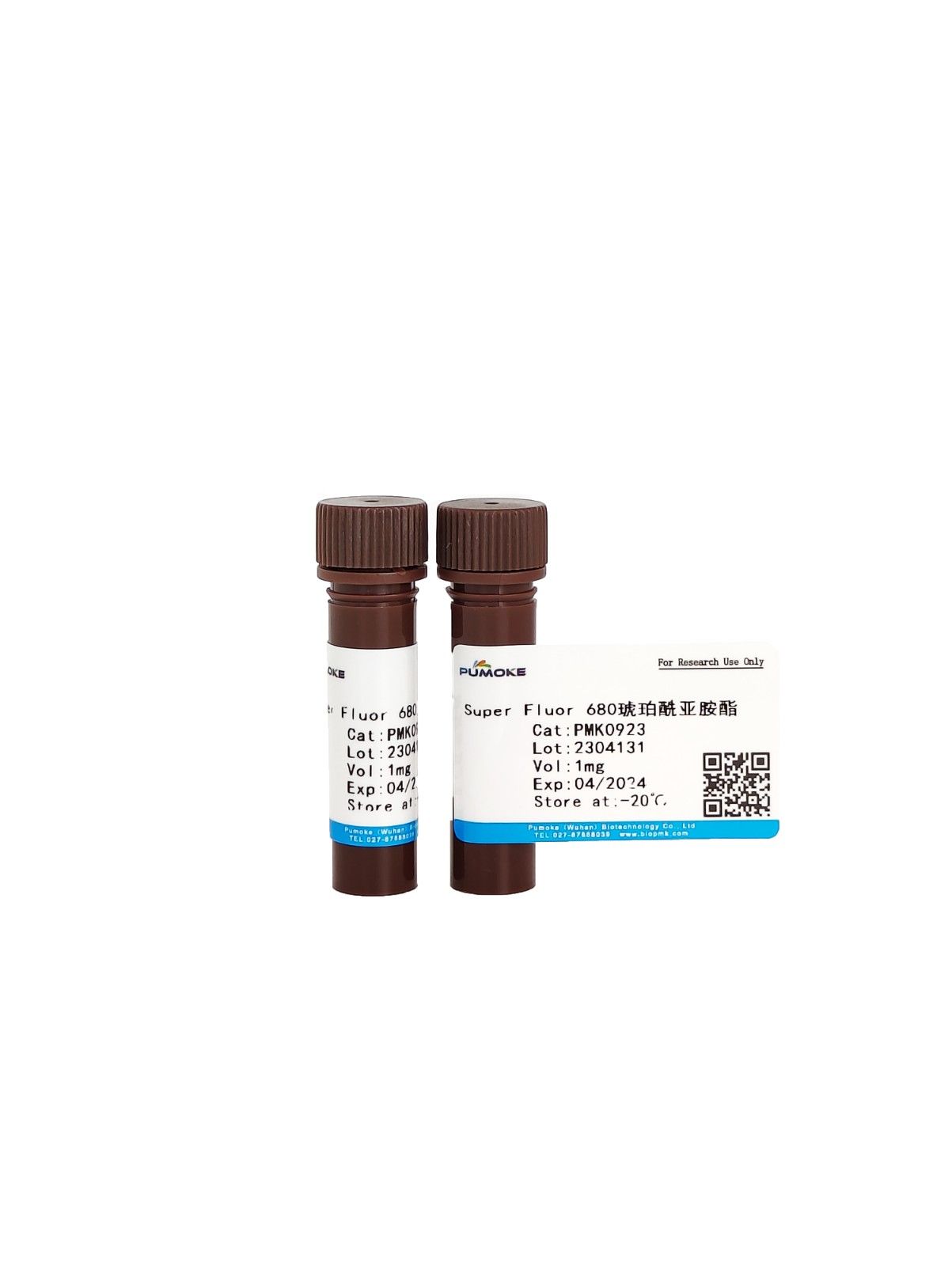 5)貯存:標記好的蛋白貯存于2~6℃,避光。若純化的蛋白偶聯物濃度小于1mg/mL,加入BSA或其他穩定蛋白1~10mg/ml。在2mM 疊氮鈉存在的情況下,2~6度可保存幾個月。保存更長時間,則需分裝后-20℃保存。避免反復凍融,避光保存。